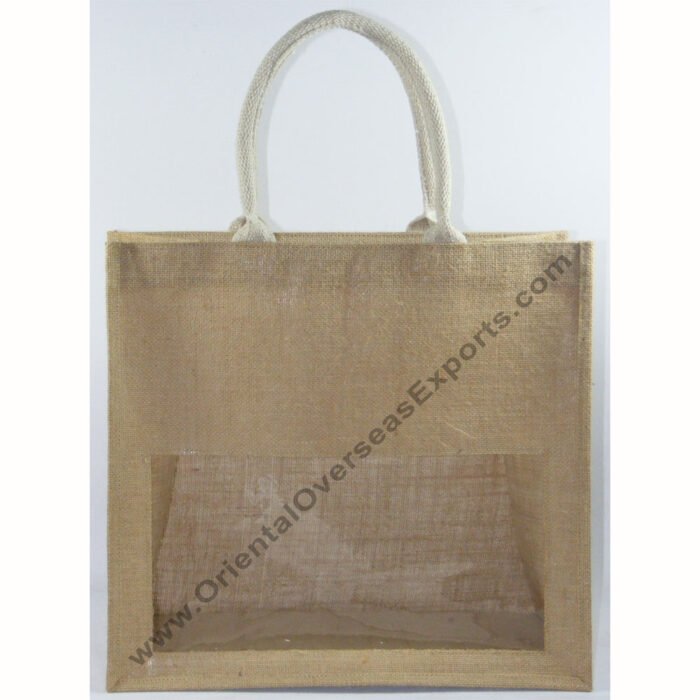Elegant looking window jute bag- made from 14x 15 way of Jute Fabric With Window and Soft Cotton Handles