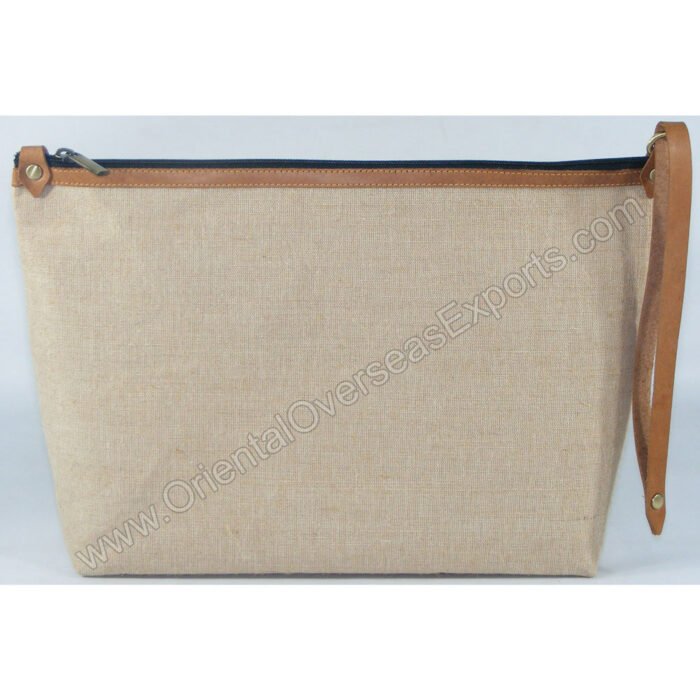 design and buy jute cotton toilet bag with real leather handle and trims online