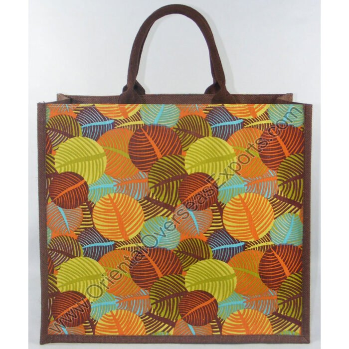 Elegant looking multi color printed jute bag # 2241 with Soft cotton Handles.