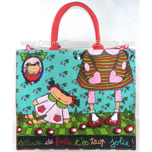 Buy multi color printed jute bag # CBJMH13L with cotton handles