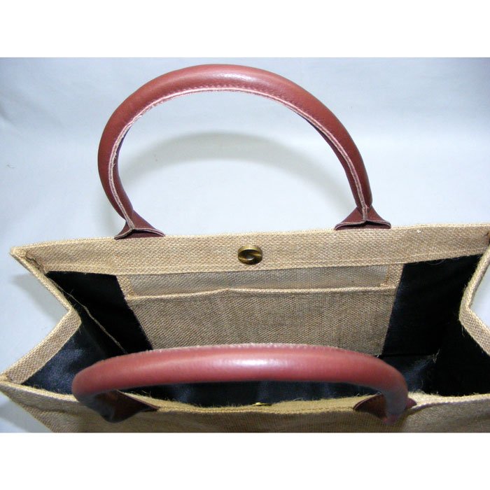 Elegant looking Luxury Natural Jute Bag # 2476 with real leather handles.