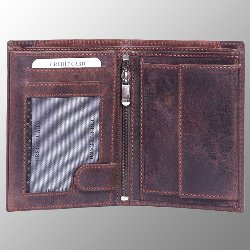 - It has 9 slots for Credit Cards, 3 windows for cards, 2 other slots for larger cards, Center Zip Pockets, 2 Compartments for paper notes and A Huge Coin Pocket.
