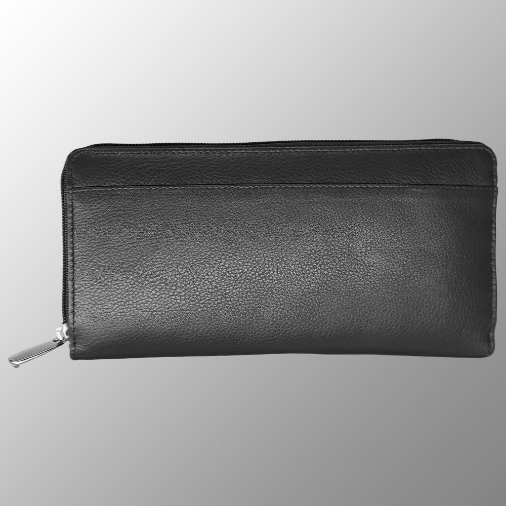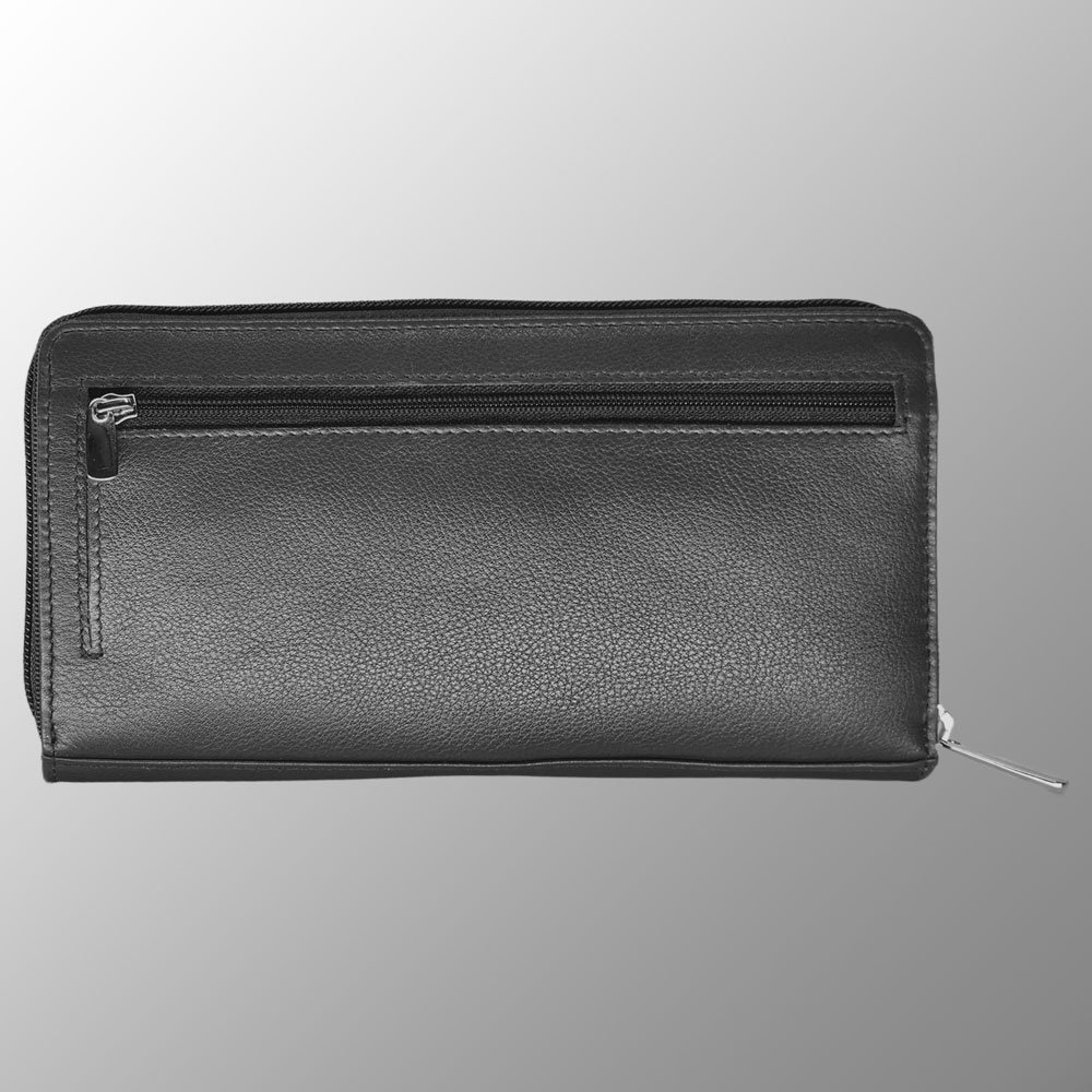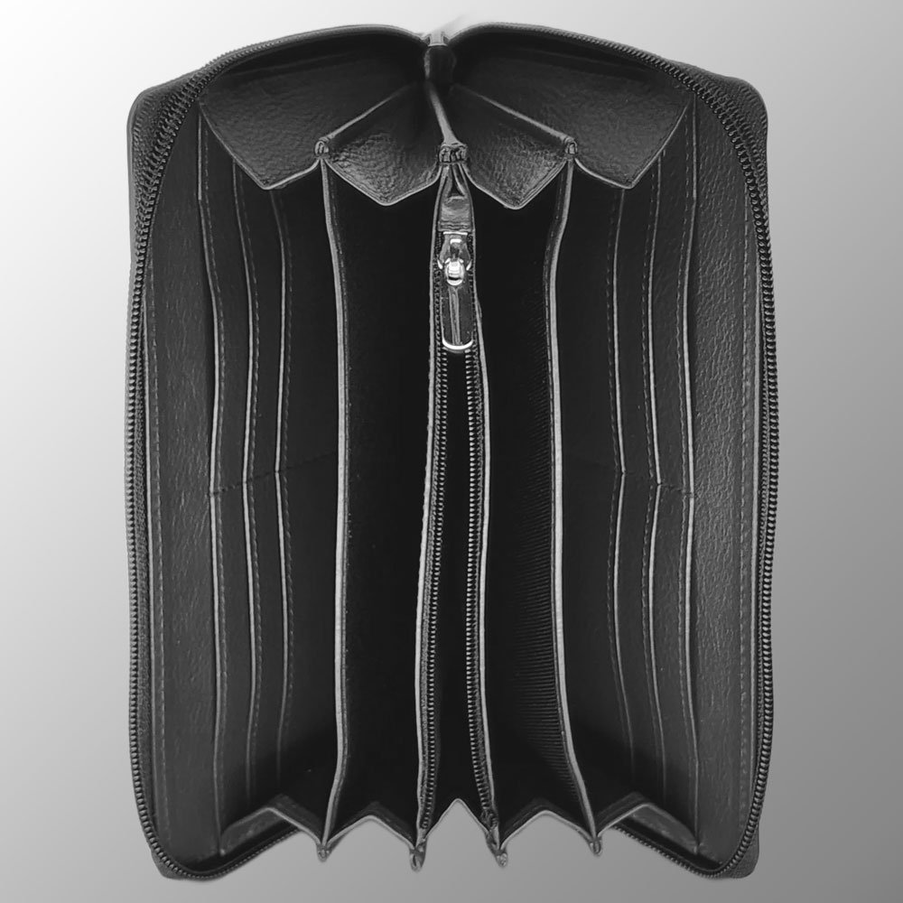 - It has 12 slots for Credit Cards, 4 note compartments, 1 Center Zip Pocket, 1 Front Pocket and 1 Back Zip Pocket.